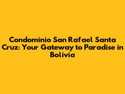 Hey there, future residents! Let's dive into the Condominio San Rafael in Santa Cruz, Bolivia. This isn't just a place to live; it's a lifestyle. Imagine waking up to stunning views, enjoying top-notch amenities, and being part of a vibrant community. Sounds amazing, right? Well, that's exactly what Condominio San Rafael offers. Let's explore why this could be your dream home!