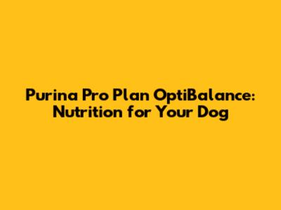 Purina Pro Plan OptiBalance: Nutrition For Your Dog