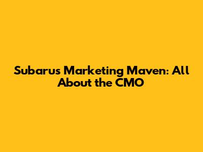 - Why is the CMO important? The CMO is essential to Subaru because they serve as the bridge between the company and its customers. Their insights inform the marketing strategies that are designed to build brand recognition, attract and retain customers, and drive sales. The CMO's leadership is critical to making sure that Subaru remains competitive in the automotive market.